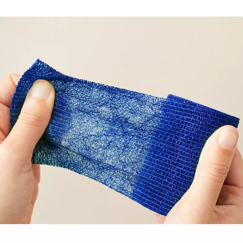 - Bandagem coesiva versus fita adesiva? A bandagem coesa adere a si mesma; as fitas adesivas usam uma cola que adere à pele ou às superfícies.