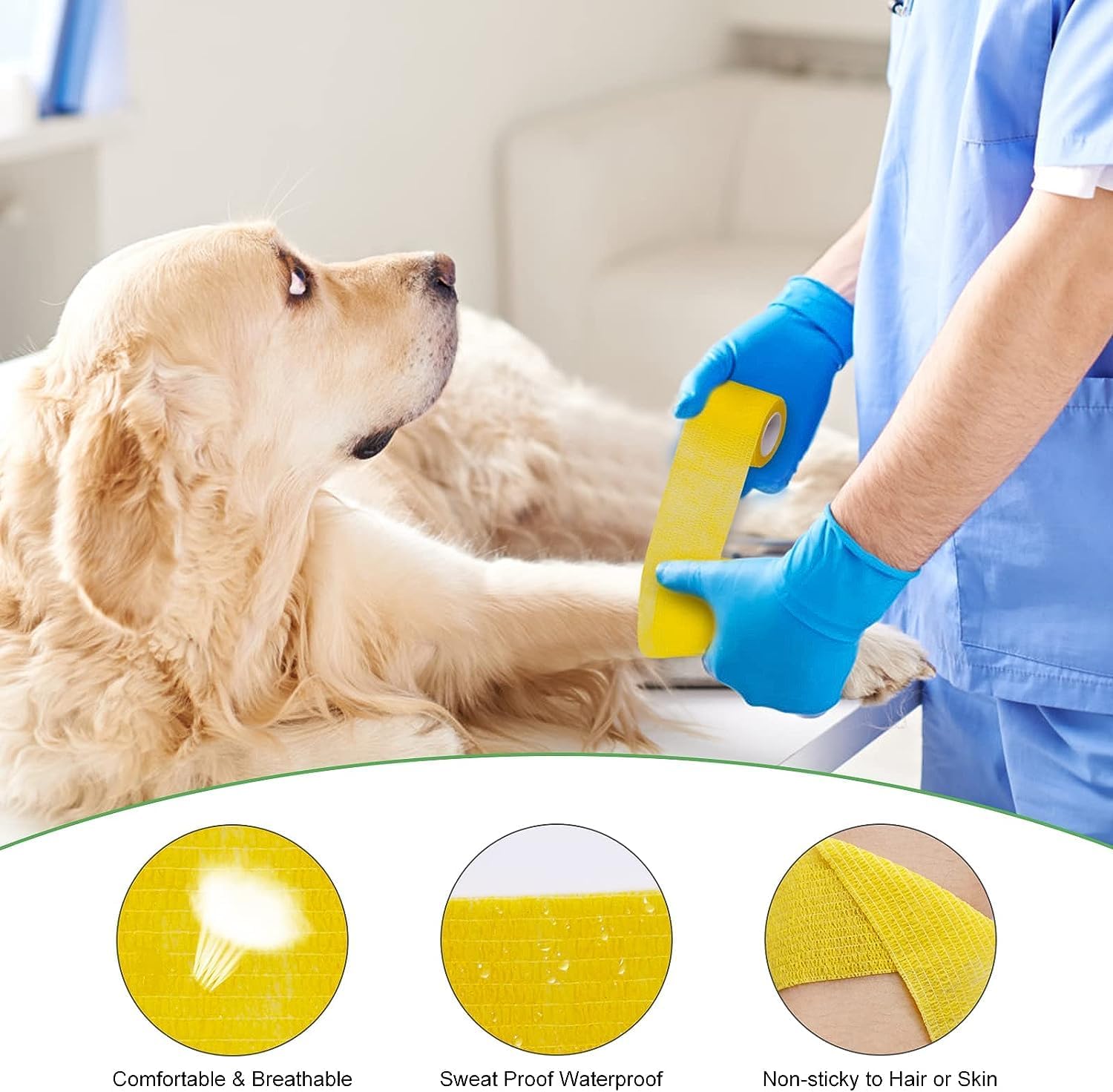 3. Respirável e confortável: o envoltório coeso permite o fluxo de ar, reduzindo o risco de acúmulo de umidade e infecções na pele. Sua textura macia garante que seu animal sinta desconforto mínimo durante o uso.